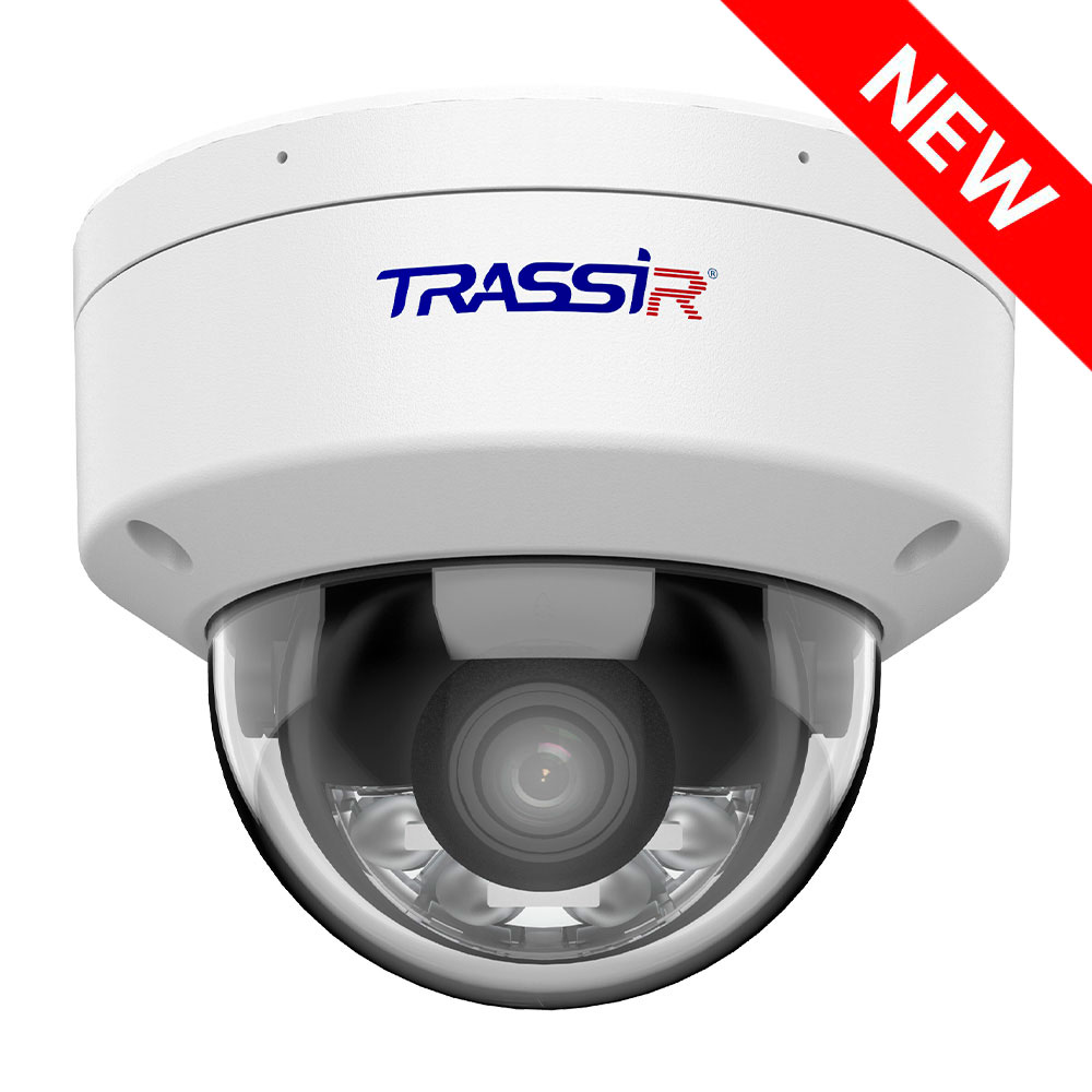TRASSIR TR-D3361WDDL4 2.8 is a dome-style outdoor IP camera with dual intelligent illumination for 24/7 video monitoring. It features a 1/1.8" CMOS sensor and delivers images at a maximum resolution of 6 MP (3200 × 1800).